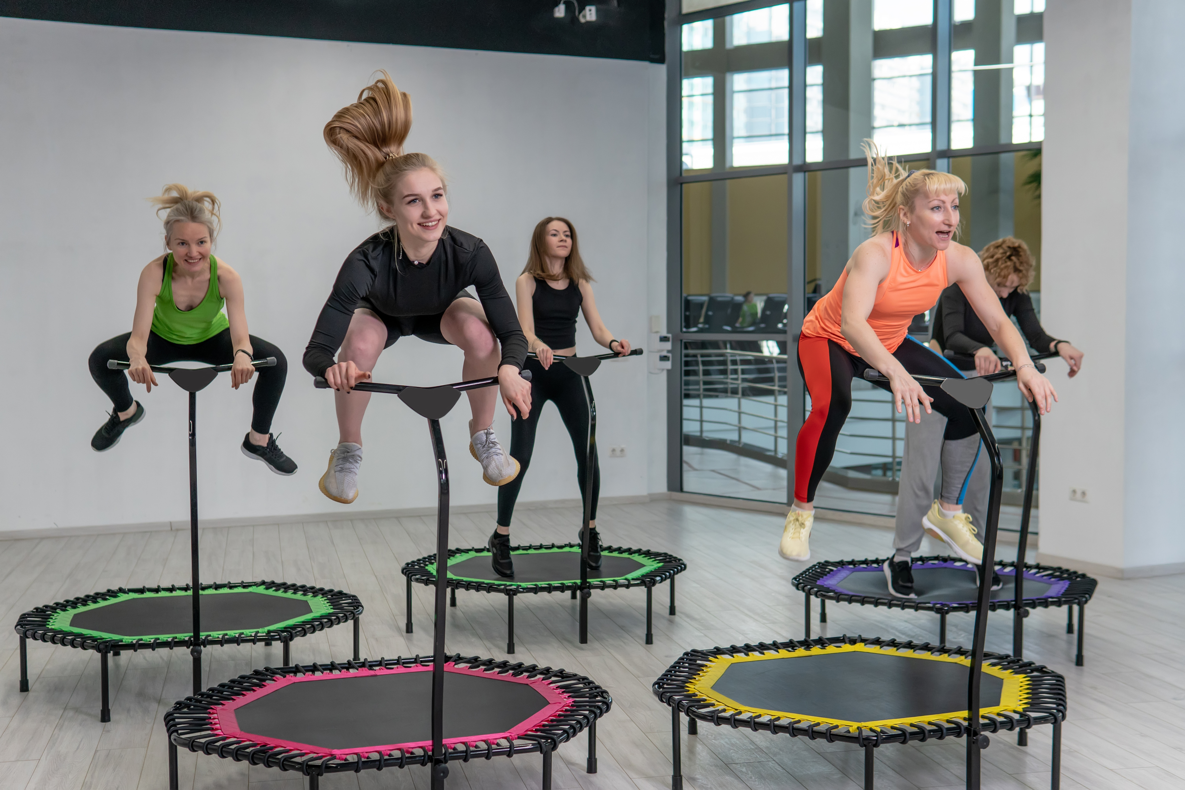 Über Jumping: Zeit zum Abheben! Lass die Schwerkraft für dich arbeiten – und trainiere Muskeln, die im Alltag viel zu wenig beansprucht werden. Kondition, Koordination, Kraft, Beweglichkeit und Balance werden auf dem Mini – Trampolin spürbar verbessert. Für jede/n geeignet, da du die Intensität der Übungen selbst bestimmen kannst. Dabei wird die Muskulatur unter geringster Belastung der Gelenke geformt und gestärkt. Wag den Sprung!